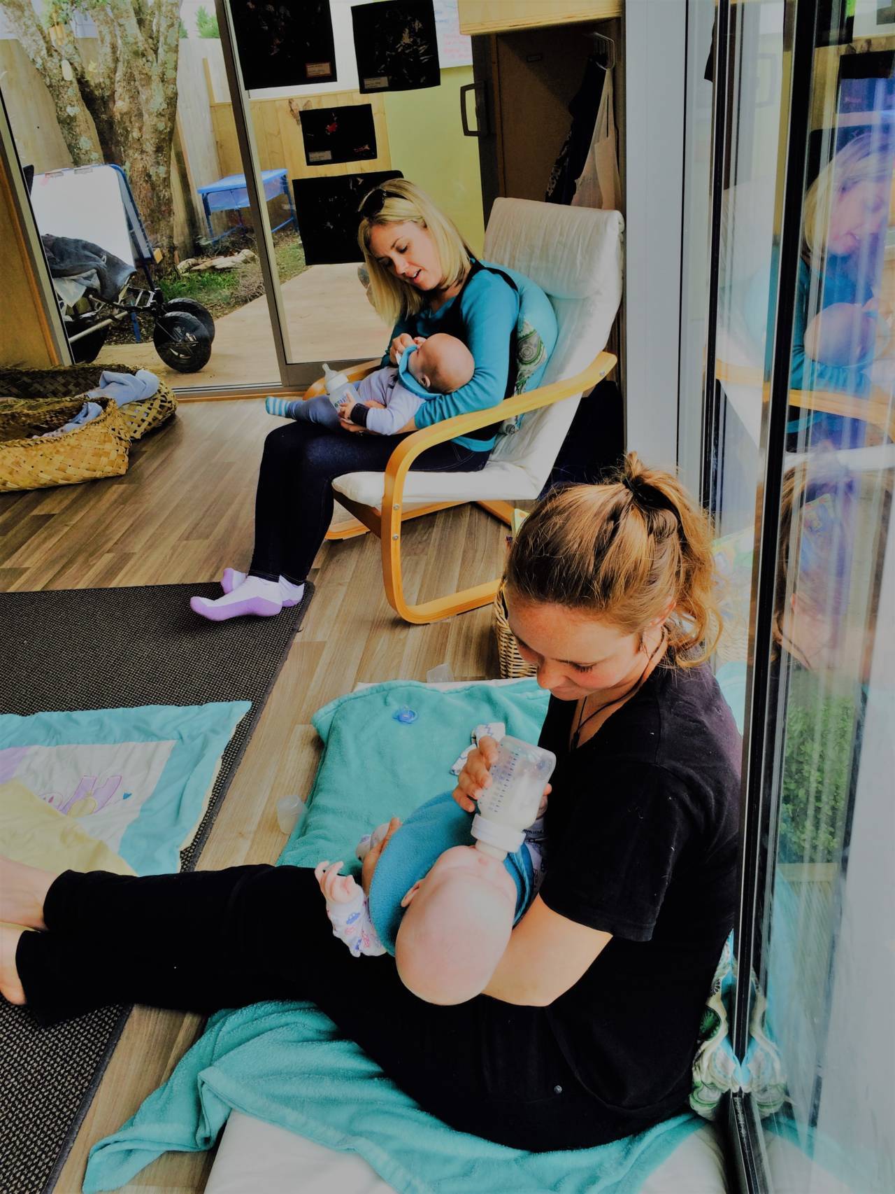All infants starting in the tots space are given a primary caregiver who provides one on one time and is involved in their care and routines, and connects directly with parents on a daily basis.